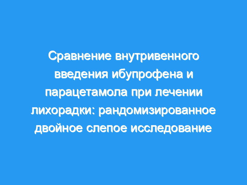 Рандомизированное двойное слепое исследование проводилось в отделении неотложной помощи высшего учебного заведения в течение шести месяцев. В исследование были включены пациенты в возрасте 18-65 лет, у которых температура была ≥38,0°C. Пациентам вводили 400 мг внутривенно ибупрофена и 1000 мг внутривенно парацетамола. Основная цель исследования состояла в том, чтобы определить, существует ли разница в влиянии этих двух препаратов на лихорадку. Вторичная цель состояла в том, чтобы выяснить, существует ли разница в измерениях по числовой шкале оценки (NRS) и необходимости дополнительной жаропонижающей терапии.