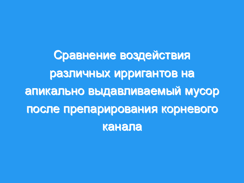На количество апикально выдавливаемого мусора может влиять несколько факторов. Цель состояла в том, чтобы количественно сравнить количество мусора, выдавленного апикально из корневых каналов, когда во время препарирования каналов ротационными инструментами использовались 3 различных ирриганта.