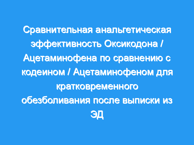 Пациенты рандомизированы на оксикодон/ацетаминофен (5 мг/325 мг) или кодеин/ацетаминофен (30 мг/300 мг). Первичным результатом, полученным по телефону через один день после выписки из больницы, была разница между группами в улучшении показателей боли по числовой шкале оценки (NRS) в течение 2-часового периода после последнего приема исследуемого препарата. Вторичные результаты включали долю пациентов с & gt, уменьшение боли на 50%, профиль побочных эффектов и удовлетворенность пациентов.