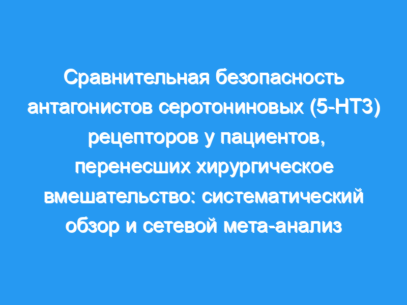 Антагонисты серотониновых (5-HT3) рецепторов обычно используются для уменьшения тошноты и рвоты у хирургических пациентов, но эти препараты могут быть вредными. Мы провели систематический обзор сравнительной безопасности антагонистов 5-НТ3-рецепторов.