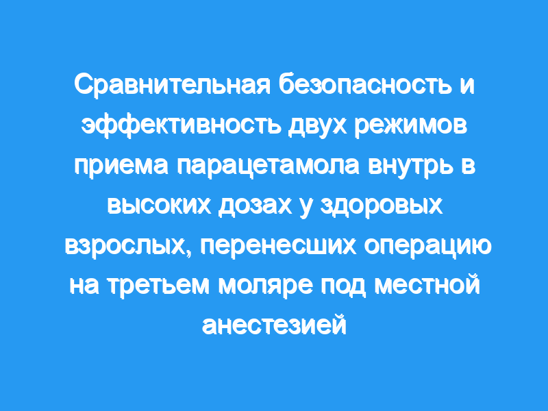 Можно сделать вывод, что доза 90 мг/кг, хотя и безопасна, не дает никаких преимуществ по сравнению с дозой парацетамола в дозе 60 мг/кг у молодых здоровых взрослых, перенесших операцию на третьем моляре.
