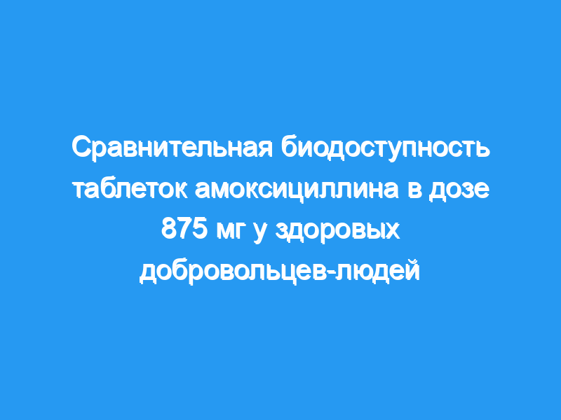 26 здоровых добровольцев (13 мужчин и 13 женщин) получали каждый препарат в открытом перекрестном рандомизированном исследовании 2 × 2 с семидневным периодом вымывания между дозами. Образцы плазмы были получены в течение 12-часового интервала после введения. Концентрации амоксициллина в плазме крови были получены с помощью комбинированной обращенно-фазовой жидкостной хроматографии и масс-спектрометрии с ионизацией электрораспылением положительных ионов с использованием метода мониторинга ионов select. AUC рассчитывали методом экстраполяции по трапециевидному правилу. Cmax и tmax были рассчитаны на основе данных о концентрации и времени в плазме. Дисперсионный анализ проводили с использованием логарифмически преобразованных AUC0-inf, AUC0-12 ч, Cmax и нетрансформированных tmax.