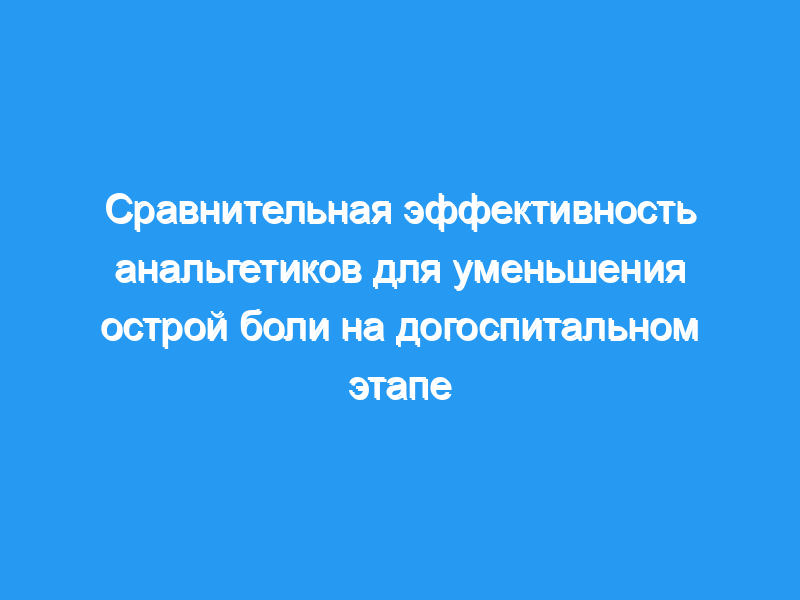Целью данного исследования была оценка сравнительной эффективности и вреда опиоидных и неопиоидных анальгетиков для лечения острой боли средней и тяжелой степени на догоспитальном этапе.