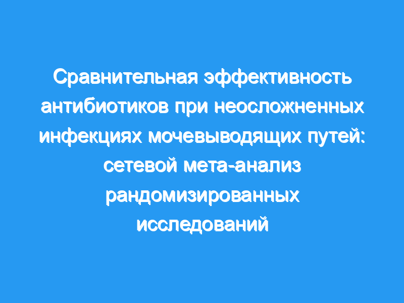 Эффективность и побочные эффекты различных антибиотиков при неосложненных инфекциях мочевыводящих путей (ИМП) были изучены стандартными метааналитическими методами с использованием попарных прямых сравнений противомикробных методов лечения: эффекты одного лечения сравниваются с эффектами другого лечения или плацебо. Однако для принятия клинических решений нам необходимо знать эффективность каждого возможного лечения в сравнении со всеми соответствующими альтернативами, а не только с одним.