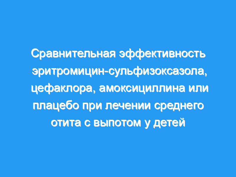Мы заключаем, что при антимикробном лечении отита среды с выпотом считается целесообразным, ни эритромицин-сульфисоксазол, ни цефаклор не должны заменять амоксициллин в качестве лечения первой линии.