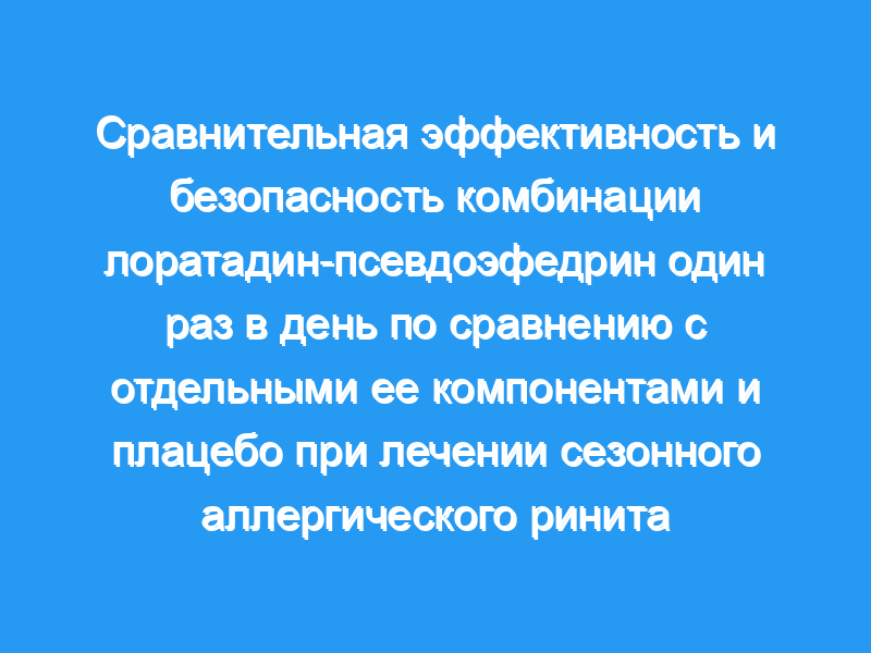 SCH 434 QD неизменно превосходил плацебо в контроле симптомов сезонного аллергического ринита. Совокупный показатель симптомов (общий, общий назальный и общий неназальный) был значительно снижен у пациентов, получавших SCH 434 QD, по сравнению с плацебо (p <, 0,01). При сравнении с его отдельными компонентами снижение средних показателей симптомов было последовательно большим в численном выражении у пациентов, получавших SCH 434 QD, чем у пациентов, которые получали только лоратадин или псевдоэфедрин. SCH 434 QD превосходил псевдоэфедрин в уменьшении назальных симптомов во все моменты времени (p & lt, 0,01) и превосходил лоратадин в облегчении заложенности носа в конечной точке (p <, 0,01). При оценке терапевтического ответа врачами в группе SCH 434 QD было наибольшее количество пациентов с хорошим или отличным ответом в конечной точке (58%). Все виды лечения, как правило, хорошо переносились без каких-либо серьезных или необычных побочных эффектов. Бессонница и нервозность, побочные явления, обычно связанные с псевдоэфедрином, были отмечены у значительно большего числа пациентов, получавших SCH 434 QD или псевдоэфедрин (p <, or = 0,04) по сравнению с теми, кто получал лоратадин или плацебо.