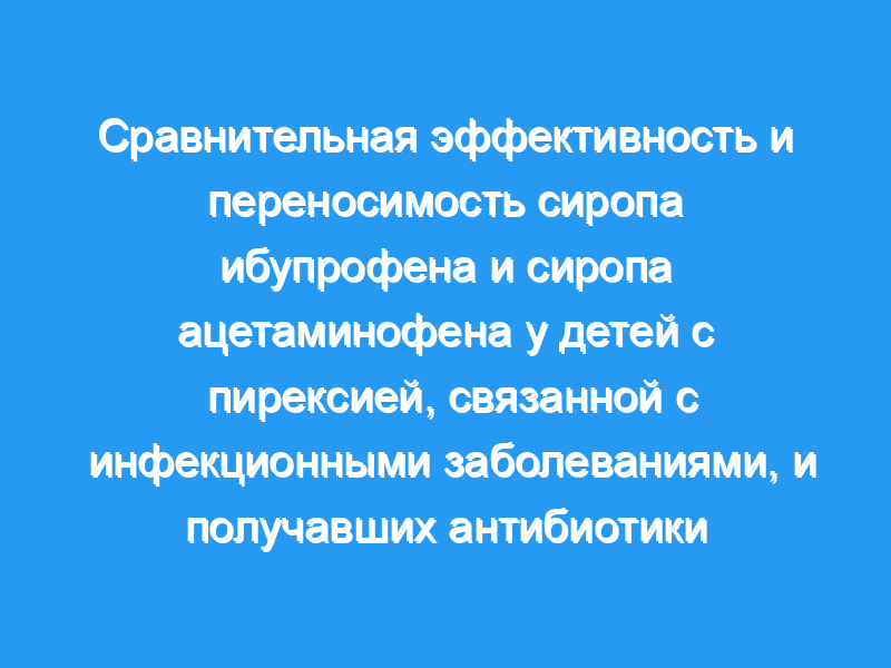 Было проведено двойное слепое рандомизированное параллельное групповое исследование, в котором сравнивались эффективность и переносимость сиропа ибупрофена в дозе 7,5 мг/кг (n = 77) и сиропа ацетаминофена в дозе 10 мг/кг-1 (n = 77) у 154 детей (от 6 месяцев до 5 лет) с лихорадкой (>, или = 38 °C), связанных с инфекционными заболеваниями и леченных антибиотикотерапией.