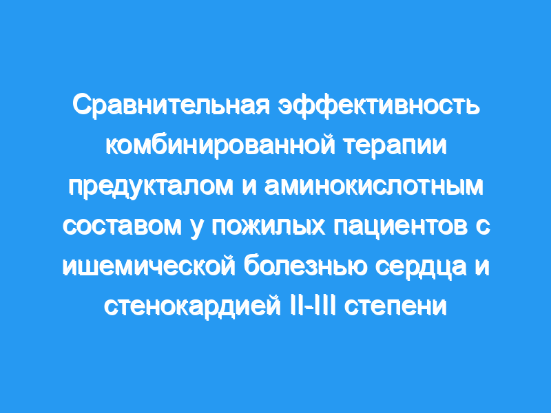 Сравнительный анализ эффективности комбинированной терапии, включающей триметазидин (предуктал) и состав аминокислот (глутаминовая кислота, глицин и цистеин) у пожилых пациентов с ишемической болезнью сердца и стенокардией II-III функционального класса (ФК II-III).