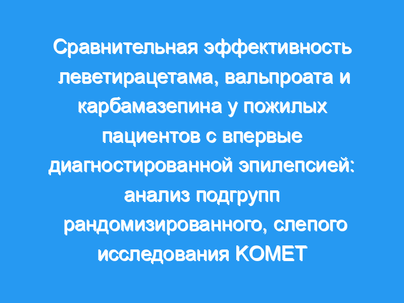 В этом пост-специальном подгрупповом анализе данных открытого рандомизированного 52-недельного исследования превосходства (KOMET) сравнивалась эффективность леветирацетама (LEV) с вальпроатом натрия пролонгированного действия (VPA-ER) и карбамазепином с контролируемым высвобождением (CBZ-CR) в качестве монотерапии. у пациентов в возрасте ≥ 60 лет с впервые диагностированной эпилепсией. Врач выбрал VPA или CBZ в качестве предпочтительного стандартного лечения, пациенты были рандомизированы на стандартные AEDs или LEV. Первичной конечной точкой было время до отмены лечения. Результаты носят ознакомительный характер, поскольку КОМЕТА не использовалась для анализа подгрупп по возрасту.
