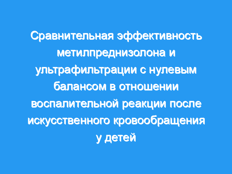 Целью данного исследования было сравнить эффективность метилпреднизолона (МП) и ультрафильтрации с нулевым балансом (ZBUF) при SIRS во время детской CPB. Тридцать младенцев, перенесших операции на открытом сердце, были рандомизированы для получения либо MP в растворе для затравки (группа M, n = 15), либо ZBUF во время CPB (группа Z, n = 15). Все пациенты выживают.