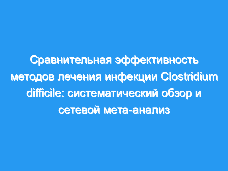 Мы провели метаанализ сети случайных эффектов в условиях частого использования, чтобы получить прямые и косвенные сравнения испытаний. Мы провели поиск в MEDLINE, Embase, Web of Science, Cochrane Central Register of Controlled Trials и ClinicalTrials.gov для опубликованных и неопубликованных испытаний с момента создания этих баз данных до 30 июня 2017 года. Мы включили рандомизированные контролируемые исследования методов лечения немножественно рецидивирующих инфекций с подтвержденным C difficile у взрослых (не менее 18 лет), в которых сообщалось как о первичном излечении, так и о частоте рецидивов, и мы использовали инструмент Cochrane Risk of Bias для оценки методов исследования. Для нашего анализа мы извлекли общее число пациентов с первичным излечением и рецидивом из опубликованных и неопубликованных отчетов. Первичным результатом было стойкое симптоматическое излечение, определяемое как число пациентов, у которых диарея прошла, минус число пациентов с рецидивом или смертью. Выводы: Из 23 004 скрининговых исследований в анализ были включены 24 исследования, в которых приняли участие 5361 пациент и 13 различных методов лечения. Общее качество доказательств было оценено как от среднего до низкого. Для длительного симптоматического лечения — фидаксомицин (отношение шансов 0·67, 95% ДИ 0·55-0·82 ) и тейкопланин (0·37, 0·14-0·94) были значительно лучше, чем у ванкомицина. Тейкопланин (0·27, 0·10-0·70), ридинилазол (0·41, 0·19-0·88), фидаксомицин (0·49, 0·35-0·68), суротомицин (0·66, 0·45-0·97), и ванкомицин (0·73, 0·56-0·95) были лучше, чем метронидазол. Бацитрацин уступал тейкопланину (0·22, 0·06-0·77) и фидаксомицин (0·40, 0·17-0·94), а толевамер уступал всем препаратам, кроме LFF571 (0·50, 0·18-1·39) и бацитрацин (0·67, 0·28-1·58). Глобальная неоднородность всей сети была низкой (Q Кокрана=15·70, p=0·47). Интерпретация: Среди методов лечения немногословных рецидивирующих инфекций, вызванных C difficile, данные самого высокого качества указывают на то, что фидаксомицин чаще всего обеспечивает стойкое симптоматическое излечение. Фидаксомицин является лучшим вариантом лечения, чем ванкомицин, для всех пациентов, за исключением пациентов с тяжелыми инфекциями, вызванными C difficile, и может рассматриваться в качестве терапии первой линии. Метронидазол не следует рекомендовать для лечения C difficile. Финансирование: Отсутствует.