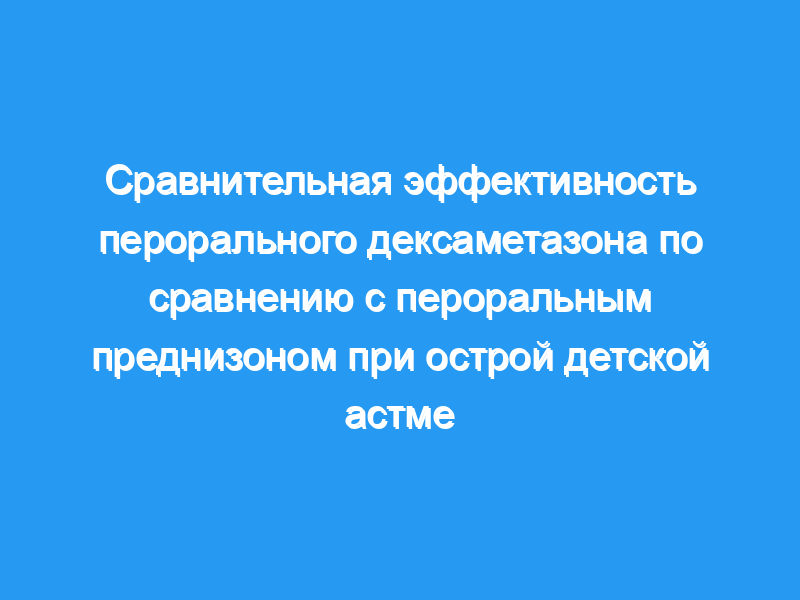 Цель состояла в том, чтобы определить, является ли 2-дневный пероральный прием дексаметазона (DEX) более эффективным, чем 5-дневный пероральный прием преднизолона/преднизолона (PRED) в улучшении симптомов и предотвращении рецидива у детей с острой астмой. План исследования: Это было проспективное рандомизированное исследование детей (от 2 до 18 лет), поступивших в отделение неотложной помощи с острой астмой. Использовали PRED 2 мг/кг, максимум 60 мг (нечетные дни) или DEX 0,6 мг/кг, максимум 16 мг (четные дни). При выписке детям из группы PRED назначали 4 суточные дозы (1 мг/кг/сут, максимум 60 мг), дети из группы DEX получали расфасованную дозу (0,6 мг/кг, максимум 16 мг) для приема на следующий день. Первичным исходом был рецидив в течение 10 дней.