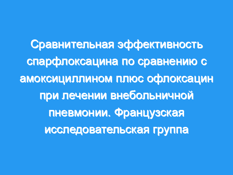 Проспективное, плацебо-контролируемое двойное слепое рандомизированное исследование, сравнивающее пероральный прием спарфлоксацина в дозе 200 мг один раз в день после нагрузочной дозы 400 мг в 1-й день с пероральной комбинацией амоксициллина в дозе 1 г tid плюс офлоксацина в дозе 200 мг bid, было проведено у 211 госпитализированных пациентов с внебольничной пневмонией.