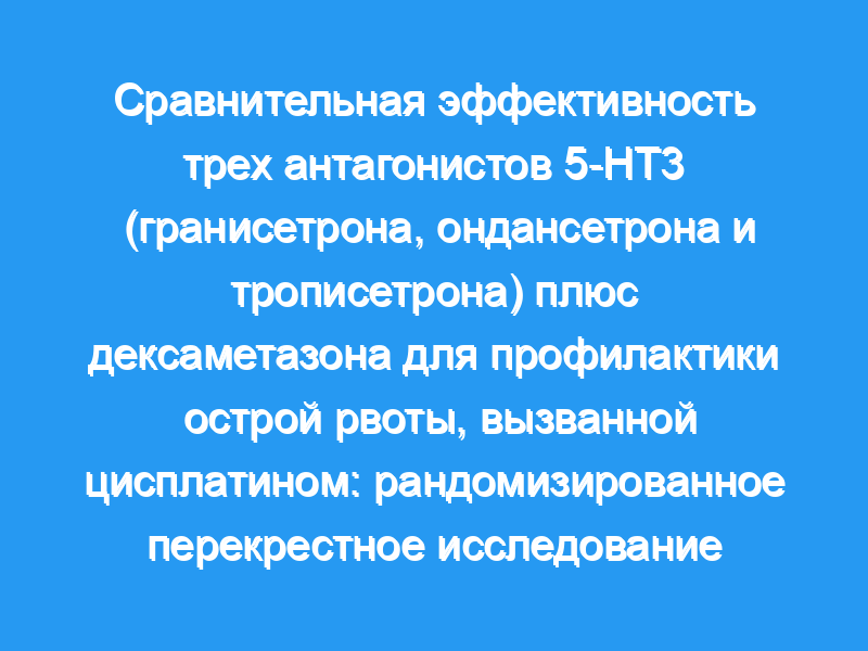 Целью этого исследования было сравнить противорвотную эффективность трех антагонистов 5-НТ3 (гранисетрона, ондансетрона, трописетрона) плюс дексаметазона для профилактики острой рвоты, вызванной химиотерапией цисплатином в высоких дозах.