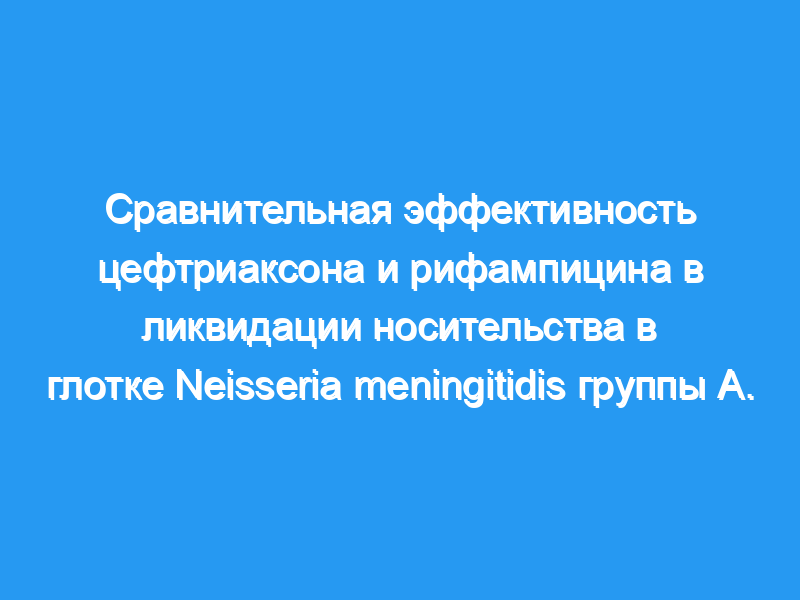 Через 1 неделю показатели эрадикации цефтриаксона и рифампицина были 97% и 75%, через 2 недели они составили 97% и 81% соответственно.