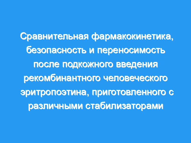 Был сделан вывод, что две концентрации r-HuEPO с фосфатным буфером, приготовленные с новым стабилизатором и без него, фармакокинетически эквивалентны.