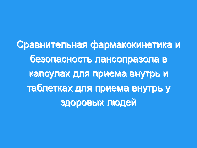 Сто двадцать здоровых испытуемых приняли участие в двух проспективных, фаза I, открытых, двухпериодных перекрестных исследованиях для получения лансопразола в дозе 15 мг или 30 мг. В рамках каждого исследования субъекты были рандомизированы в две параллельные когорты, состоящие из 30 субъектов на режим, которые распределялись в противоположной последовательности в течение двух периодов, разделенных 7-дневным периодом вымывания. Образцы крови отбирали на 1-й день обоих периодов для определения фармакокинетических параметров.