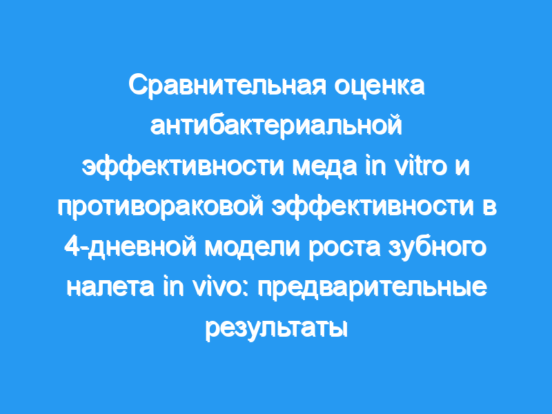 Мед обладает мощным антибактериальным действием широкого спектра действия, что может сделать его пригодным для «противоинфекционного» лечения заболеваний пародонта. Цели этого исследования заключаются в следующем: 1) оценить антибактериальную эффективность меда против бактерий полости рта и сравнить ее с 0,2% хлоргексидином и 2) сравнить противораковую эффективность in vivo с хлоргексидином.