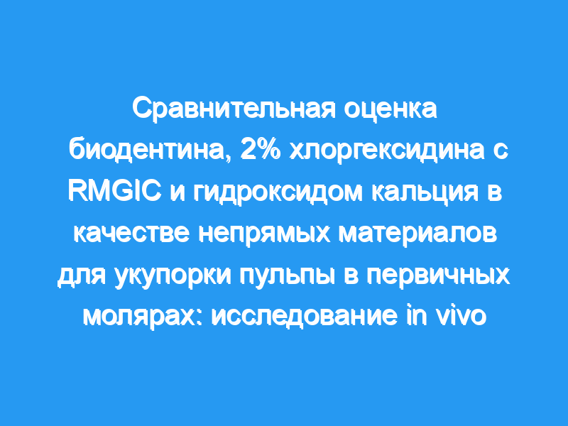 Непрямая пульпотерапия (IPT) — это традиционное лечение глубоких кариозных поражений дентина без риска воздействия на пульпу. Разработка новых биоматериалов с биосовместимостью и герметичностью изменила отношение к IPT. Цель/задачи: Это исследование было проведено для оценки и сравнения клинического и рентгенологического успеха применения биодентина, 2% хлоргексидина глюконата с модифицированным смолой стеклоиономерным цементом (RMGIC) и гидроксида кальция в качестве непрямых материалов для укупорки пульпы в первичных молярах в течение периода наблюдения 12 месяцев.