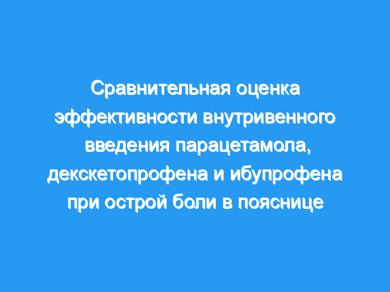 Нетравматические боли в спине составляют примерно 5% случаев госпитализации в отделения неотложной помощи. Это исследование направлено на сравнение эффективности внутривенного введения парацетамола, декскетопрофена и ибупрофена у пациентов с нетравматической острой болью в пояснице.