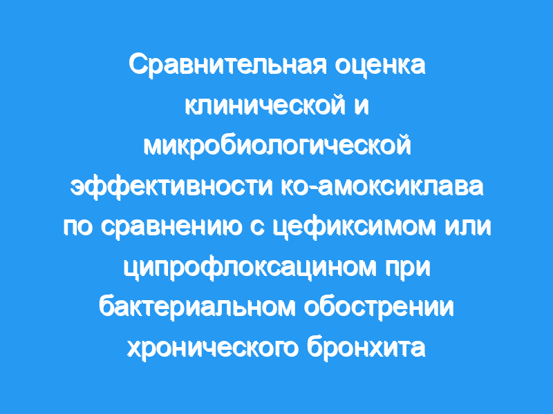 В открытом рандомизированном исследовании 218 амбулаторных пациентов (159 мужчин и 59 женщин) в возрасте от 18 до 85 лет (в среднем 61,9), страдающих бактериальным обострением хронического бронхита, были рандомизированы: 79 получали ко-амоксиклав (амоксициллин 875 мг + клавулановая кислота 125 мг) два раза в день, 69 с цефиксимом (400 мг) один раз в день и 70 с ципрофлоксацином (500 мг) два раза в день в среднем в течение 10 дней.