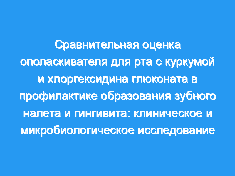 Сравнить эффективность жидкости для полоскания рта с куркумой и жидкости для полоскания рта с хлоргексидином глюконатом в профилактике гингивита и образования зубного налета.