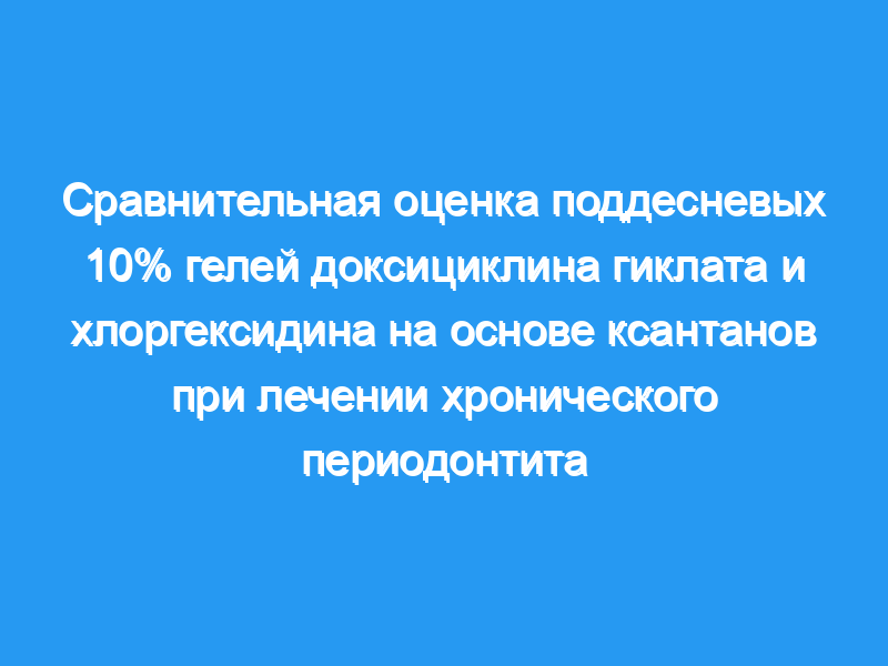 Результаты свидетельствуют о том, что лечение 10% доксициклина циклатом и хлоргексидиновыми гелями на основе ксантанов в качестве дополнения к SRP улучшает PPD и CAL у пациентов с периодонтитом по сравнению с одним SRP. Клиническое значение: использование местной медикаментозной терапии может переориентировать необходимость хирургического лечения пародонта на более глубокие карманы.