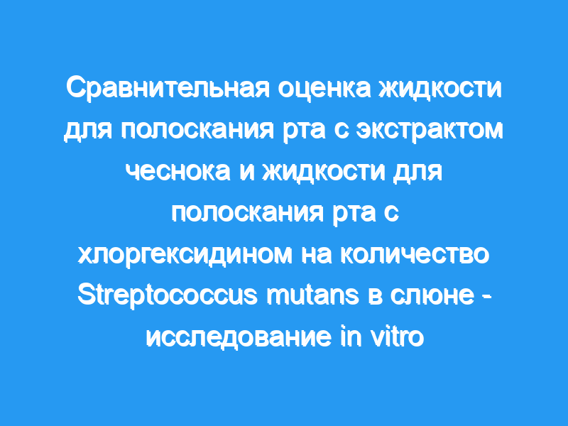 Целью настоящего исследования было оценить и сравнить антибактериальный эффект экстракта чеснока с действием хлоргексидина и ополаскивателей для рта отрицательного контроля против Streptococcus mutans.