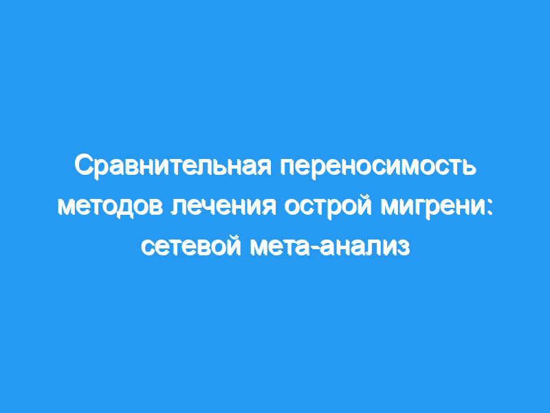 Методы Мы провели систематический обзор литературы и метаанализ байесовской сети для сравнительной переносимости методов лечения мигрени.