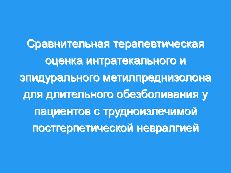 ПРЕДПОСЫЛКИ И ЦЕЛИ Целью данного исследования была оценка обезболивающих эффектов интратекального и эпидурального метилпреднизолона ацетата (MPA) у пациентов с трудноизлечимой постгерпетической невралгией (PHN).
