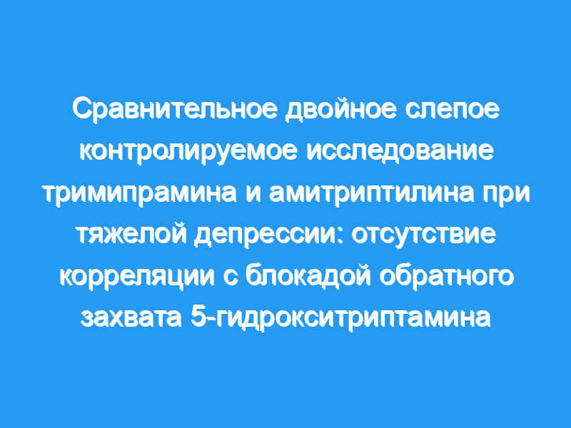 Это открытие представляет собой первое клиническое доказательство того, что тримипрамин не оказывает своего антидепрессивного эффекта через блокаду обратного захвата 5-гидрокситриптамина.