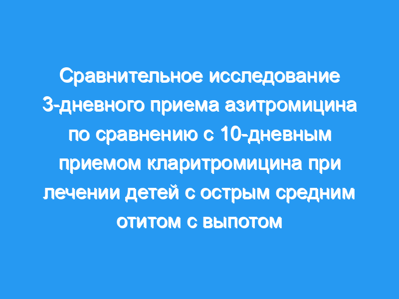 Авторы сравнили эффективность, безопасность и переносимость азитромицина и кларитромицина у педиатрических пациентов с острым средним отитом.