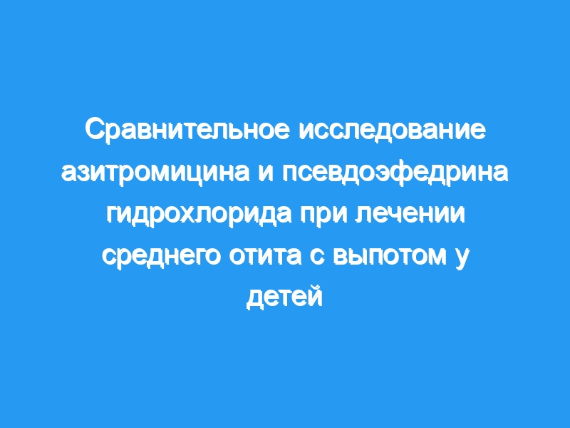 Мы сравнили результаты двух различных схем — азитромицина и псевдоэфедрина гидрохлорида (PHCl) — для лечения среднего отита с выпотом (OME) у детей.