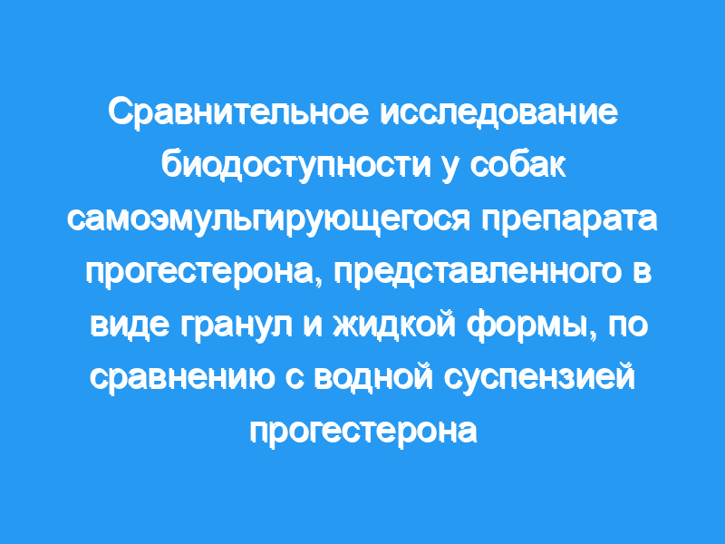 Гранулированный препарат прогестерона в самоэмульгирующейся системе (SES) был получен методом экструзии/сферонизации для обеспечения хорошего высвобождения препарата in vitro (100% в течение 30 мин, T(50%) в течение 13 мин). Трехстороннее рандомизированное перекрестное исследование было проведено на шести самцах собак породы бигль, получавших натощак эти гранулы и тот же жидкий состав SES, оба содержались в капсуле с твердой оболочкой и водной суспензии.