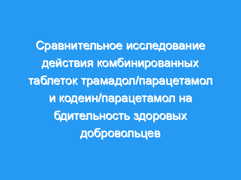Целью данного исследования было сравнить однократную дозу этих двух комбинаций (а) и (б) у 24 здоровых молодых добровольцев по времени реакции зрительного выбора (ЭЛТ, мс). Результаты показывают более длительный CRT (P <, 0,05) (до 4% от контрольного значения через 3 ч после введения дозы) и более высокий показатель сонливости в группе кодеина/парацетамола по сравнению с группой трамадола/парацетамола (50% v.