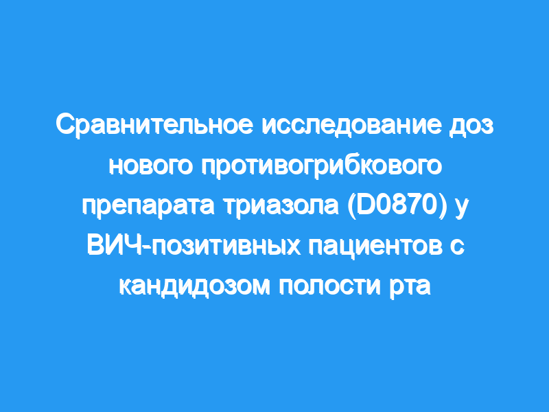 Клиническое излечение было достигнуто у 27 пациентов из общего числа 35 (77%), а у шести других пациентов улучшилось. (17%). Два пациента, получавшие самую низкую дозу, потерпели неудачу, и у обоих была очень низкая концентрация D0870 в плазме крови. Не было обнаружено никакой связи между клиническим исходом, минимальной ингибирующей концентрацией D0870 перед началом терапии Candida albicans, максимальной зарегистрированной концентрацией D0870 в плазме, кое культуры или количеством клеток CD4 при поступлении. В целом, у 37% пациентов наблюдался рецидив в течение 2 недель после терапии. Терпимость была превосходной. Легкие побочные эффекты, возможно, связанные с исследуемым препаратом, были зарегистрированы у пяти пациентов.
