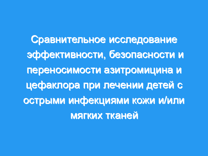 В заключение следует отметить, что азитромицин так же эффективен и хорошо переносится, как и цефаклор, при лечении детей с инфекциями кожи и/или мягких тканей.< / p>