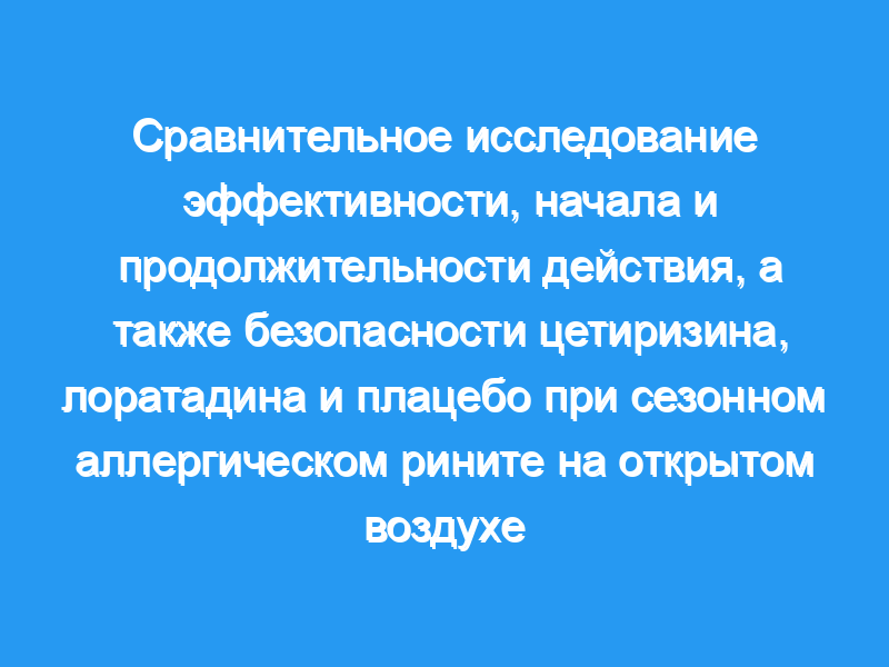 Эффективность, продолжительность и начало действия, а также безопасность цетиризина в дозе 10 мг один раз в день сравнивали с эффективностью лоратадина в дозе 10 мг один раз в день и плацебо в полевом исследовании пациентов с сезонным аллергическим ринитом.