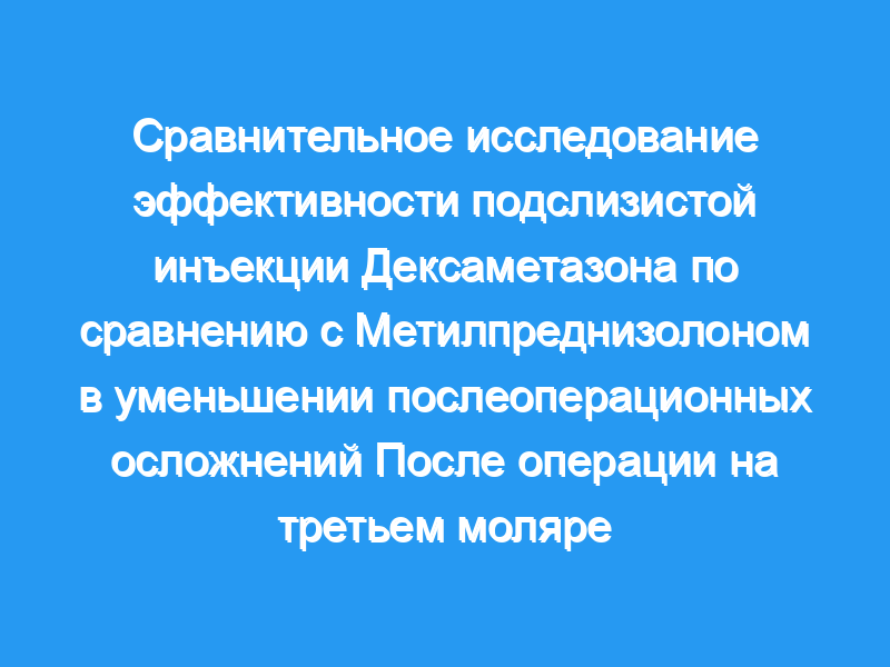 Результаты исследования свидетельствуют о том, что однократная предоперационная доза дексаметазона по сравнению с метилпреднизолоном была одинаково эффективна в уменьшении послеоперационного отека и тризма. Однако контроль боли с помощью этих кортикостероидов был переменным.