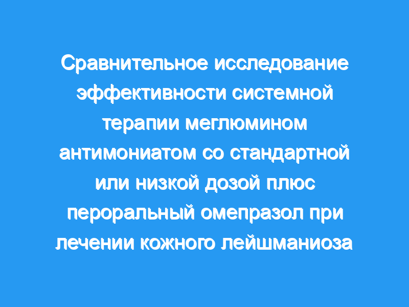 Частота полного ответа в течение трех месяцев (12 недель) после начала лечения составила 93% в группе, получавшей стандартную дозу глюкантима и плацебо, 89% в группе, получавшей омепразол и низкие дозы глюкантима, и 80% в группе, получавшей низкие дозы глюкантима. и плацебо, и эти различия были значимыми (p <, 0,05). Самая высокая частота ответов была в группе, получавшей стандартную дозу глюкантима и плацебо. Интерпретация и заключение: Хотя пероральный омепразол и низкая доза системного МА показали меньшую эффективность по сравнению со стандартной дозой системного МА при лечении кожного лейшманиоза, его все же можно рассматривать в качестве заместительной терапии у пациентов высокого риска (таких как пациенты с заболеваниями сердца, почек и/или печени) при тщательном наблюдении. наблюдение врача.