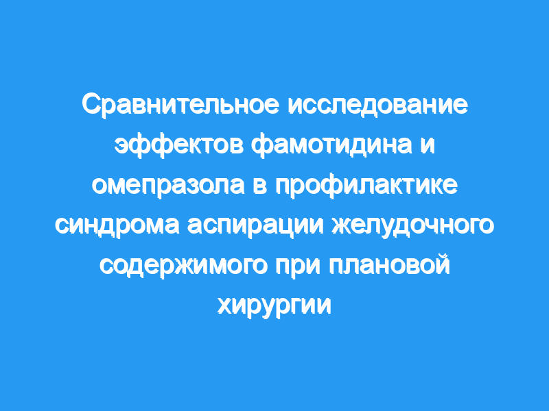 Шестьдесят пациентов, которым была назначена плановая ортопедическая операция, были случайным образом распределены на прием фамотидина в дозе 40 мг или омепразола в дозе 40 мг за 22 часа, ночью перед операцией, или омепразола в 22 часа. накануне вечером и 20 мг через 6 часов утром в день операции, 20 пациентов служили контролем и не получали никакого препарата.