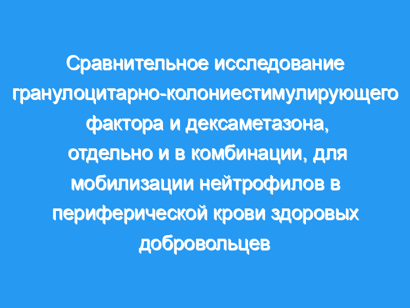 Клиническая полезность терапии переливанием полиморфноядерных нейтрофилов (PMN) была поставлена под угрозу, отчасти, из-за невозможности получить достаточное количество функциональных нейтрофилов от доноров. Чтобы определить оптимальные условия для мобилизации PMN у доноров гранулоцитов, сравнивали влияние гранулоцитарно-колониестимулирующего фактора (G-CSF) и дексаметазона, отдельно и в комбинации, на количество PMN у здоровых добровольцев. План и методы исследования: Пять здоровых субъектов были случайным образом распределены на каждый из следующих режимов однократного приема в течение 5 недель подряд: 1) G-CSF, 300 мкг подкожно, 2) G-CSF, 600 мкг подкожно: 3) дексаметазон, 8 мг перорально, 4) G-CSF, 300 мкг подкожно, плюс дексаметазон, 8 мг перорально, и 5) G-CSF, 600 мкг подкожно, плюс дексаметазон 8 мг перорально. Венозную кровь собирали через 0, 6, 12 и 24 часа после введения препарата для определения абсолютного количества нейтрофилов (ANCS).