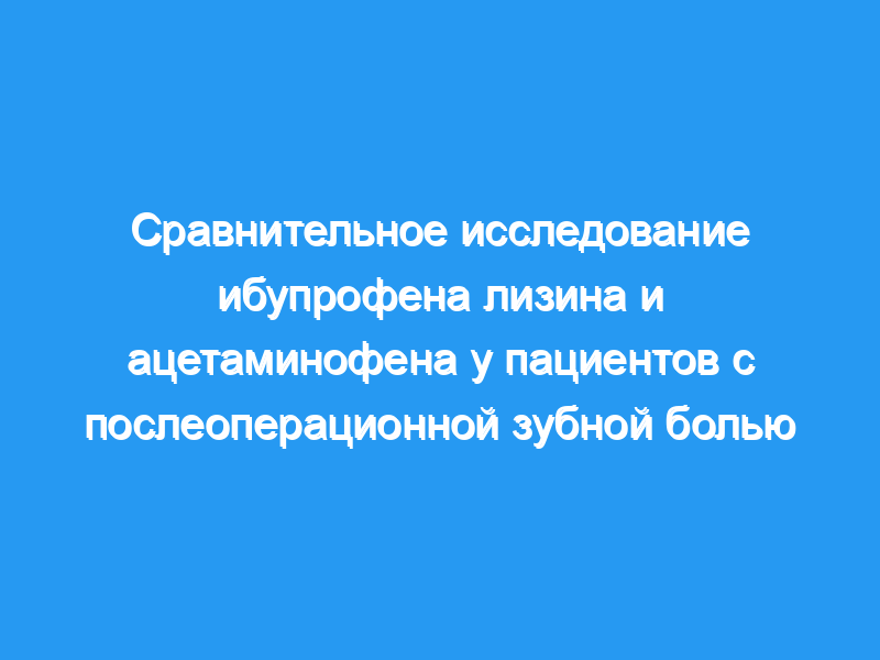 В этом однократном двойном слепом исследовании с параллельными группами в одном месте сравнивали 400 мг ибупрофена лизина с 1000 мг ацетаминофена и плацебо у 240 пациентов с послеоперационной стоматологической pai средней и тяжелой степени.