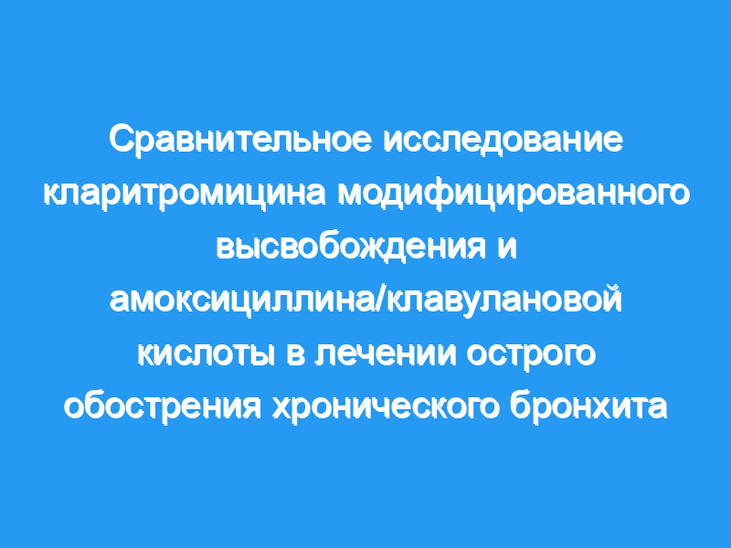 В этом III фазе слепого рандомизированного исследования с параллельными группами сравнивались эффективность и переносимость кларитромицина модифицированного высвобождения (MR) и амоксициллина/клавулановой кислоты у 250 взрослых амбулаторных пациентов с острым обострением хронического бронхита (AECB). Пациенты получали либо кларитромицин MR 500 мг один раз в день, либо амоксициллин/клавулановую кислоту 500 мг/125 мг три раза в день в течение 7 дней.