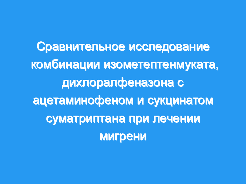 Как изометептен мукат, дихлоралфеназон с ацетаминофеном, так и суматриптан сукцинат безопасны и эффективны при использовании на ранних стадиях лечения острой мигрени. Несколько параметров позволяют предположить, что изометептен мукат, дихлоралфеназон с ацетаминофеном могут иметь небольшое преимущество по сравнению с суматриптана сукцинатом в раннем лечении мигрени легкой и средней степени тяжести.