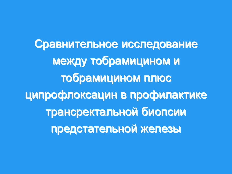 Проспективное и рандомизированное исследование у 153 пациентов с 157 биопсиями предстательной железы. 71 пациенту в группе А вводили внутримышечно тобрамицин в дозе 100 мг, одну дозу за 30 минут до биопсии и еще одну через 8 часов после нее. 85 пациентов в группе В получали те же дозы тобрамицина и пероральный ципрофлоксацин в дозе 500 мг, одну дозу за 30 минут до биопсии, а затем они продолжают принимать ципрофлоксацин каждые 12 часов в течение 3 дней.