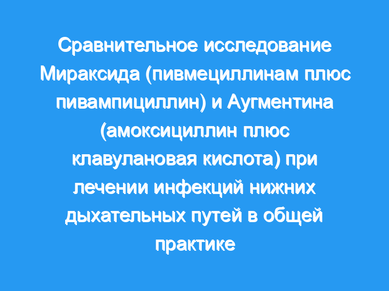 Это единственное слепое многоцентровое исследование общей практики, сравнивающее Мираксид два раза в день с аугментином 3 раза в день, продемонстрировало, что оба метода лечения были одинаково эффективными клинически и одинаково хорошо переносится.