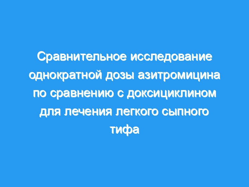 Однократная доза азитромицина в дозе 500 мг была столь же эффективна, как и 1-недельный курс ежедневных доз доксициклина в дозе 200 мг для лечения легкого сыпного тифа, приобретенного в Южной Корее.