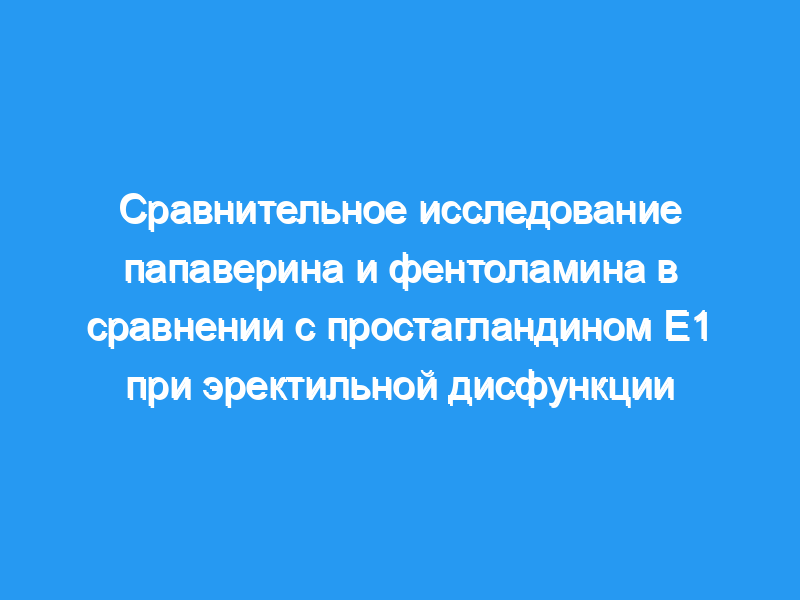 Мы сравнили эффективность и кратковременные побочные эффекты 1 мл 30 мг/мл папаверина плюс 0,5 мг/мл фентоламина по сравнению с 1 мл 30 мкг/мл простагландина Е1 у пациентов, проходящих фармакологическое тестирование на эрекцию. В общей сложности 60 пациентов (средний возраст 58 лет) с сексуальной эректильной дисфункцией в анамнезе более 6 месяцев были случайным образом разделены на 6 групп, которые должны были пройти тестирование с интервалом в 1 неделю с использованием 2 растворов и плацебо для оценки реакции на эрекцию и краткосрочных побочных эффектов.