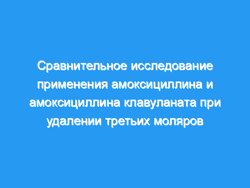 Целью данного исследования было сравнить применение амоксициллина (1 г) с амоксициллином и клавуланатом (875/125 мг) после удаления сохраненных третьих моляров для профилактики инфекционных осложнений. Дизайн исследования: В исследовании приняли участие 546 пациентов, обратившихся за удалением сохраненного третьего моляра, и разделенных на две группы: группа 1 — амоксициллин и клавунат (875/125 мг) (n=257) и группа 2 — амоксициллин (1 г) (n=289). Все пациенты были отозваны для изучения возможности инфекции, наличия диареи и дальнейшего приема обезболивающих.